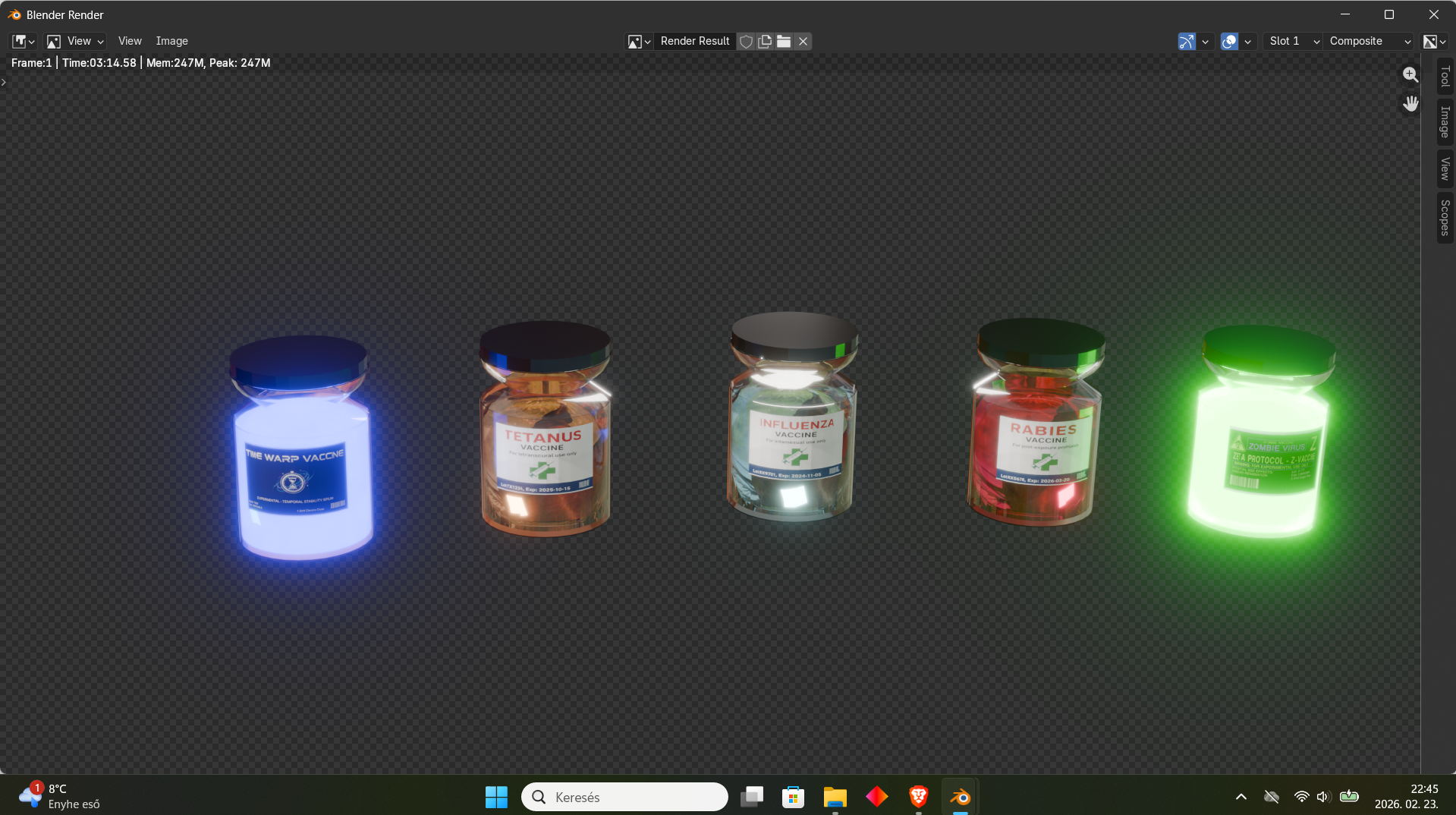 - Visuals: 2 vials (Zombie and Warp) include high-intensity "Emission" materials for a glowing effect.